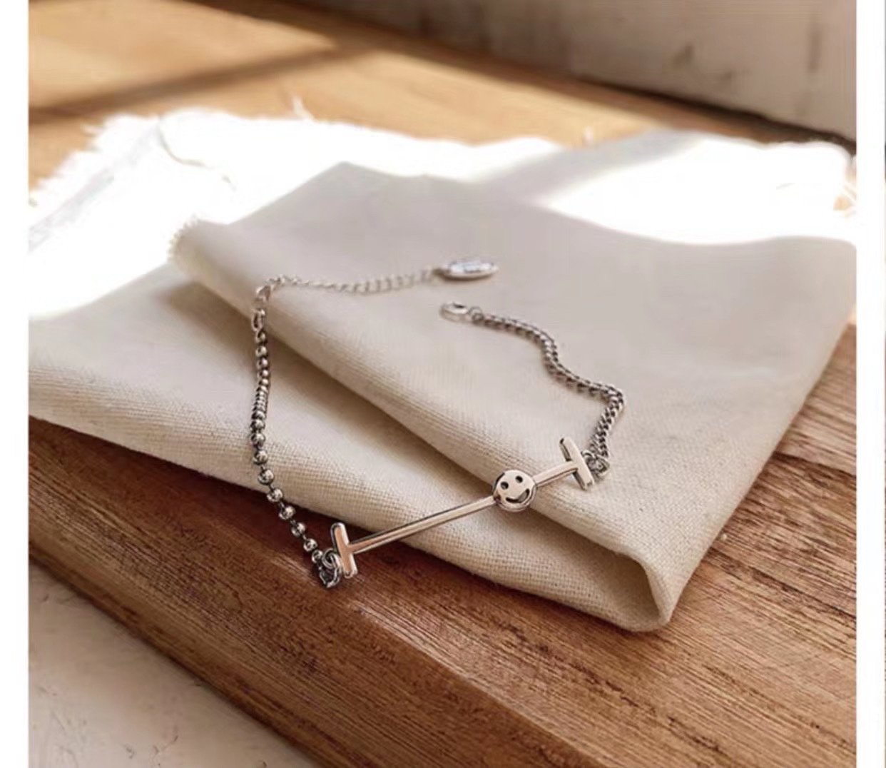 纯银手链女ins小众设计简约气质冷淡风复古网红笑脸学生闺蜜手饰